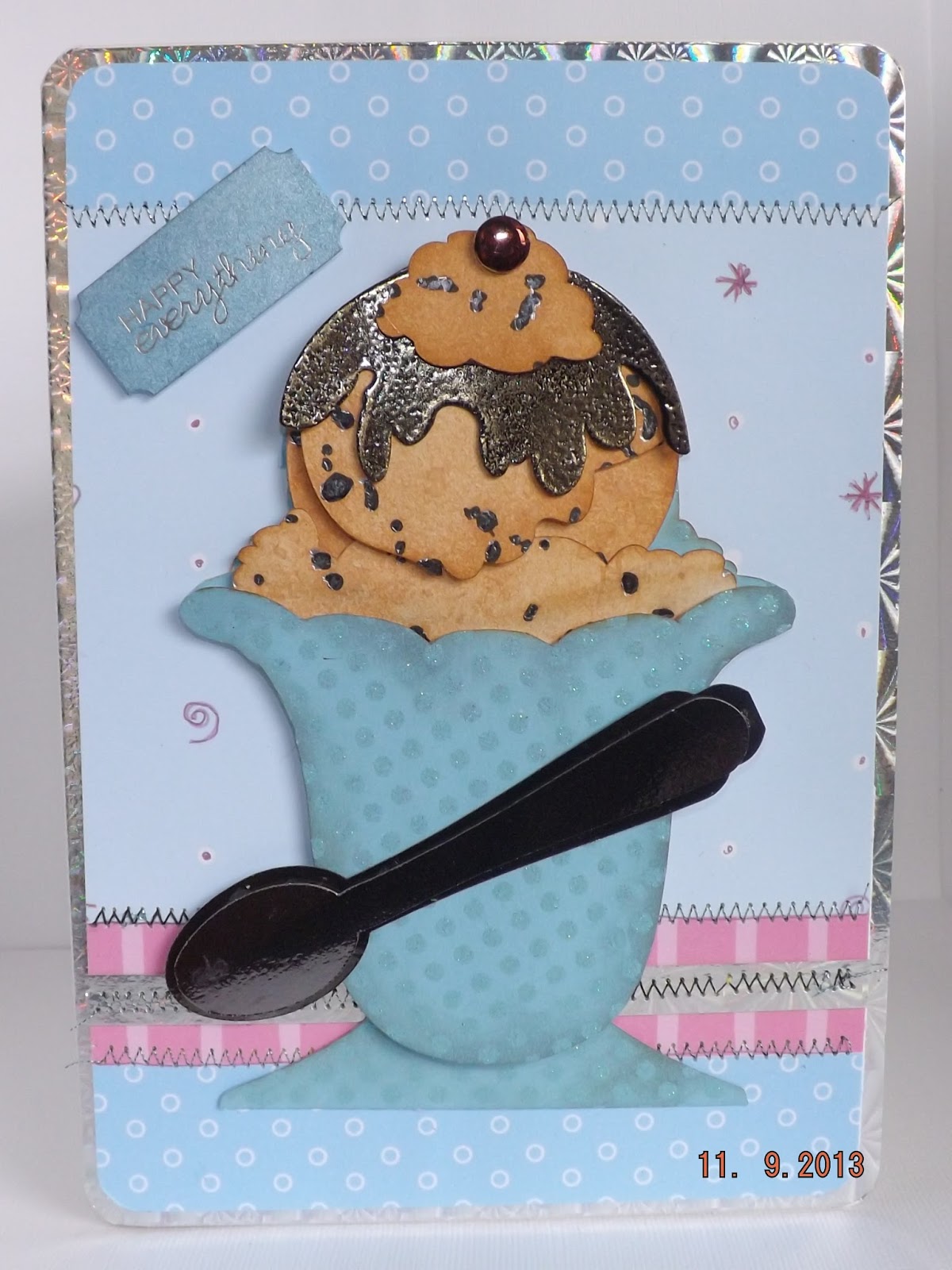This is my double choc-chip Sundae with chocolate sauce (embossing powder). |